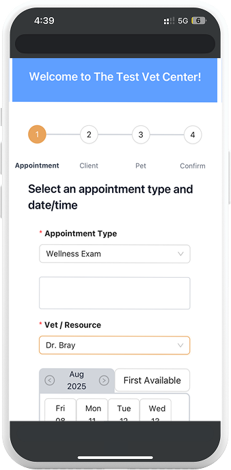 Simplify scheduling and delight your clients with 24/7 online bookings that sync directly with your PIMS. No more phone tag or double-bookings, just an effortless booking experience that keeps your calendar accurate and your team focused on what matters most: patient care. Clinicwise handles it all automatically so your day runs smoother, even while you sleep.